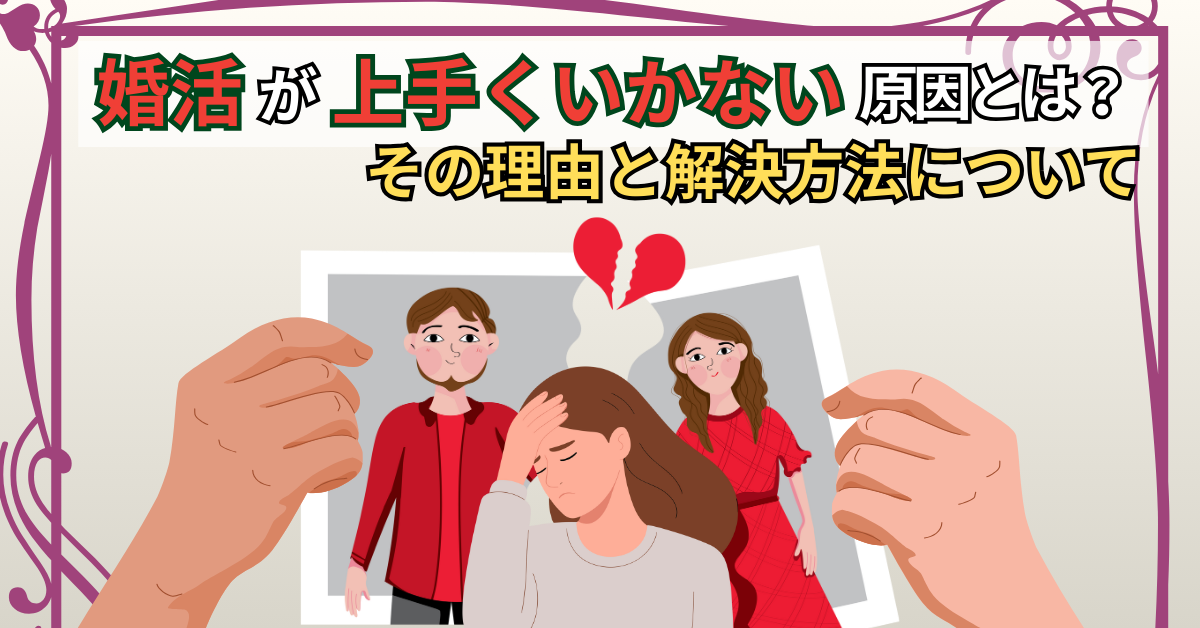 なぜ、婚活がうまくいかないのか、その原因や解決方法について紹介していきます。
