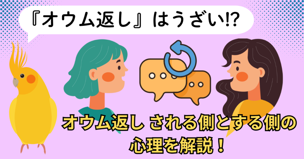 みなさんの周りには、やたらとオウム返しをしてくる人はいませんか? もしかしたら、やたらとオウム返ししてくる人に「うざい」と感じているかもしれませんね。 しかし、「オウム返し」はカウンセリングにも活用されている、コミュニケーションの技術の一...
