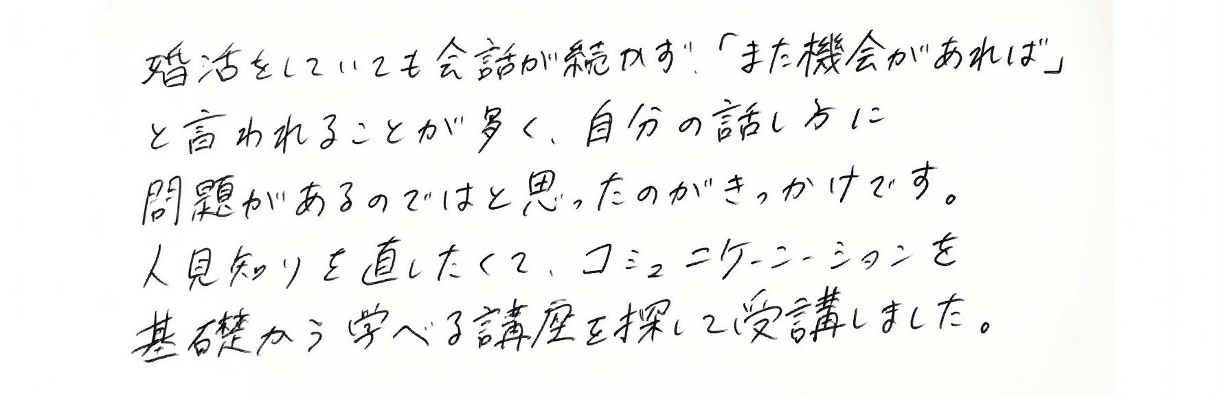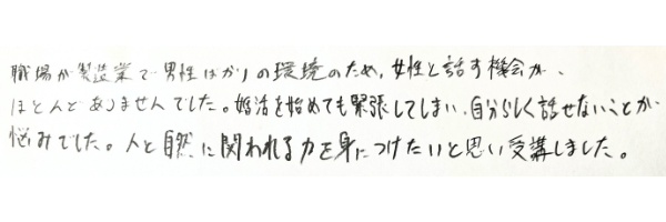 この教室に通っている方々は、8割以上の方が、コミュニケーション講座を初めて習う方ばかりです。